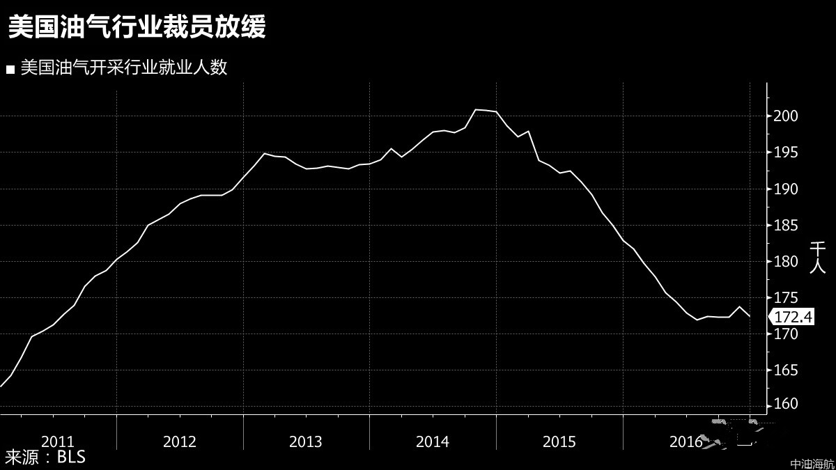 另据行业咨询机构Graves &; Co的信息,低迷时期全球裁员了近50万人的石油行业三年来料将再次扩张。该机构表示,截至2016年末,全球石油行业共裁员440131人,其中油田服务供应商、钻井承包商和设备制造商的裁员占四分之三以上,约三分之一发生在美国。但现在石油公司已重新开始招人,他们抓住油价升破每桶50美元的机会在北美页岩油田增加钻井。自去年9月以来,美国开采商已经增加了超过100口钻井。