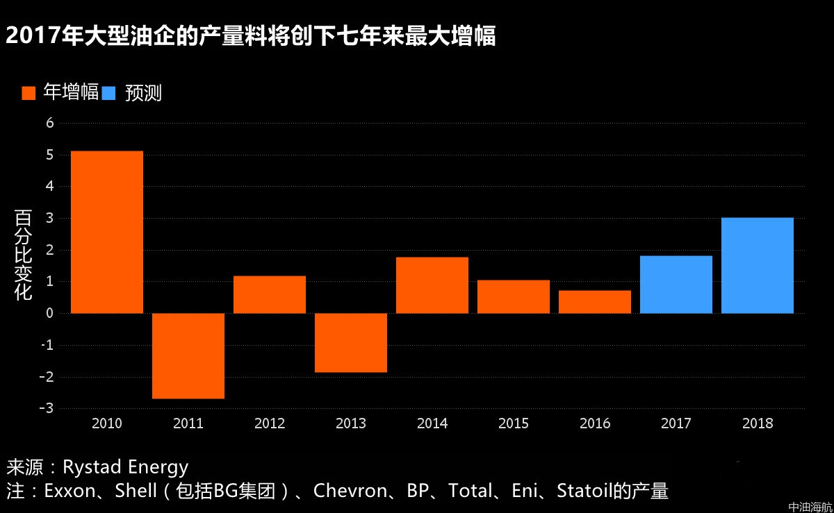 据彭博援引雷斯塔能源公司(Rystad Energy)数据报道,全球七大能源公司今年将一共增产石油和天然气39.8万桶/日,创2010年来最大增幅,而且2108年还将进一步增产。
